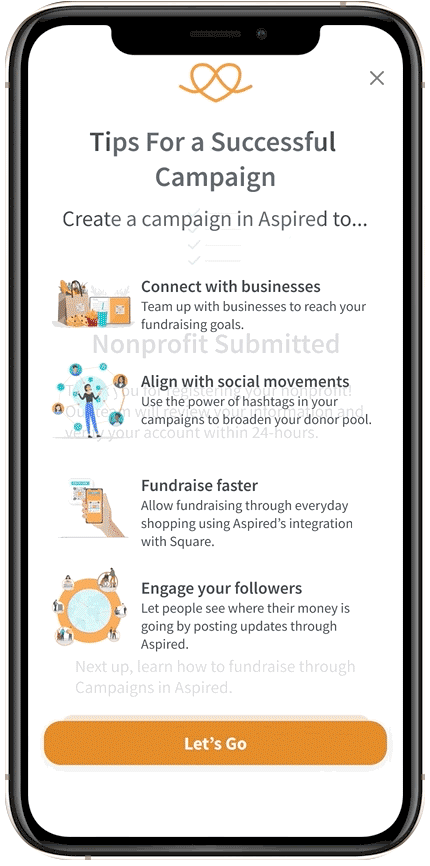 Additionally, the Aspired leadership team has set a goal of growing the number of nonprofits registered on the app from 8 to 80 by the end of 2022. Our team was tasked with improving the nonprofit onboarding user journey in order to help Aspired achieve their goal.